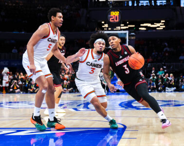 Ryan Conwell scored 24 points to lead the University of Louisville men’s basketball team to a 92-89 win at No. 22/23 Miami in its regular season finale Saturda...
