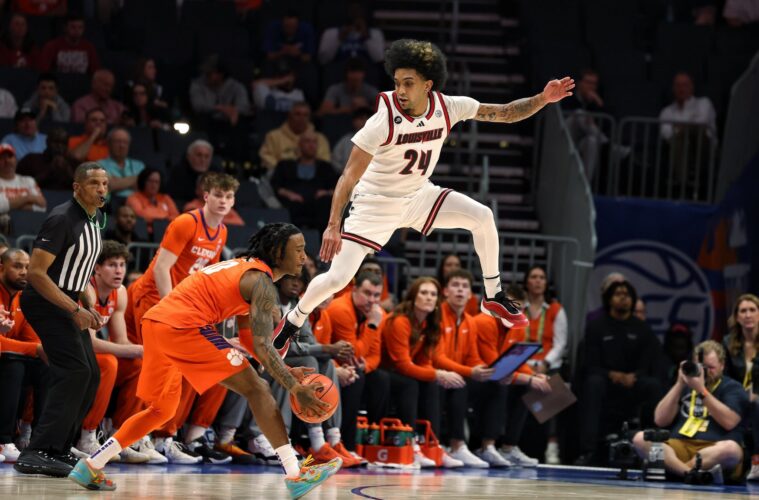 Terrence Edwards scored 21 points, J’Vonne Hadley added 20 points and nine rebounds as No. 2 seed Louisville beat No. 3 seed Clemson, 76-73, on Friday night in the 2025 T. Rowe Price ACC Men’s Basketball Tournament semifinals.